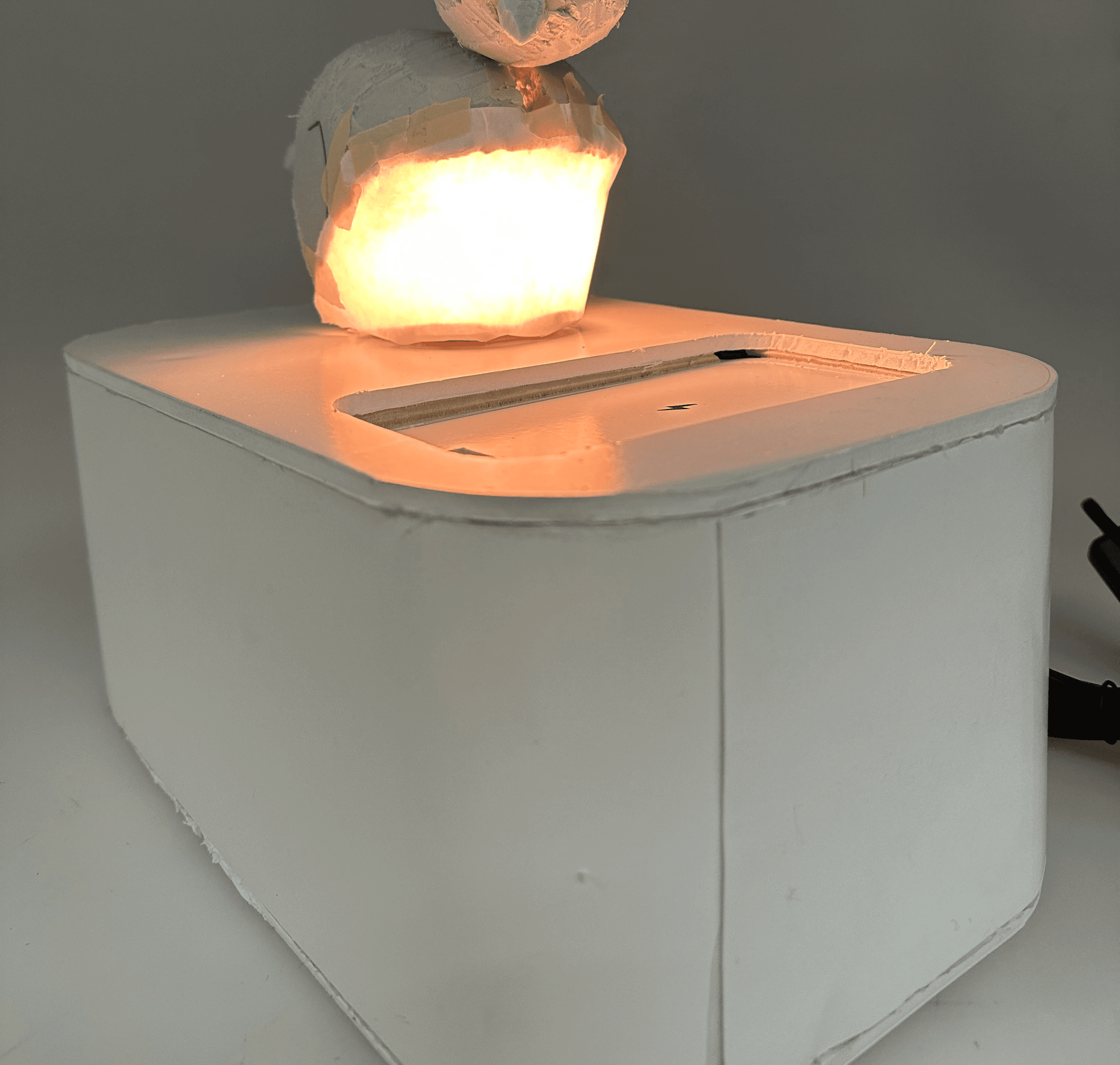 During a cold read session with my class, my design intentions were well received. However, feedback highlighted concerns about the lamp's bulky base, which made it feel overly large. Some also suggested that concealing the phone more effectively could reduce temptation and reinforce the habit of disconnecting before bed.