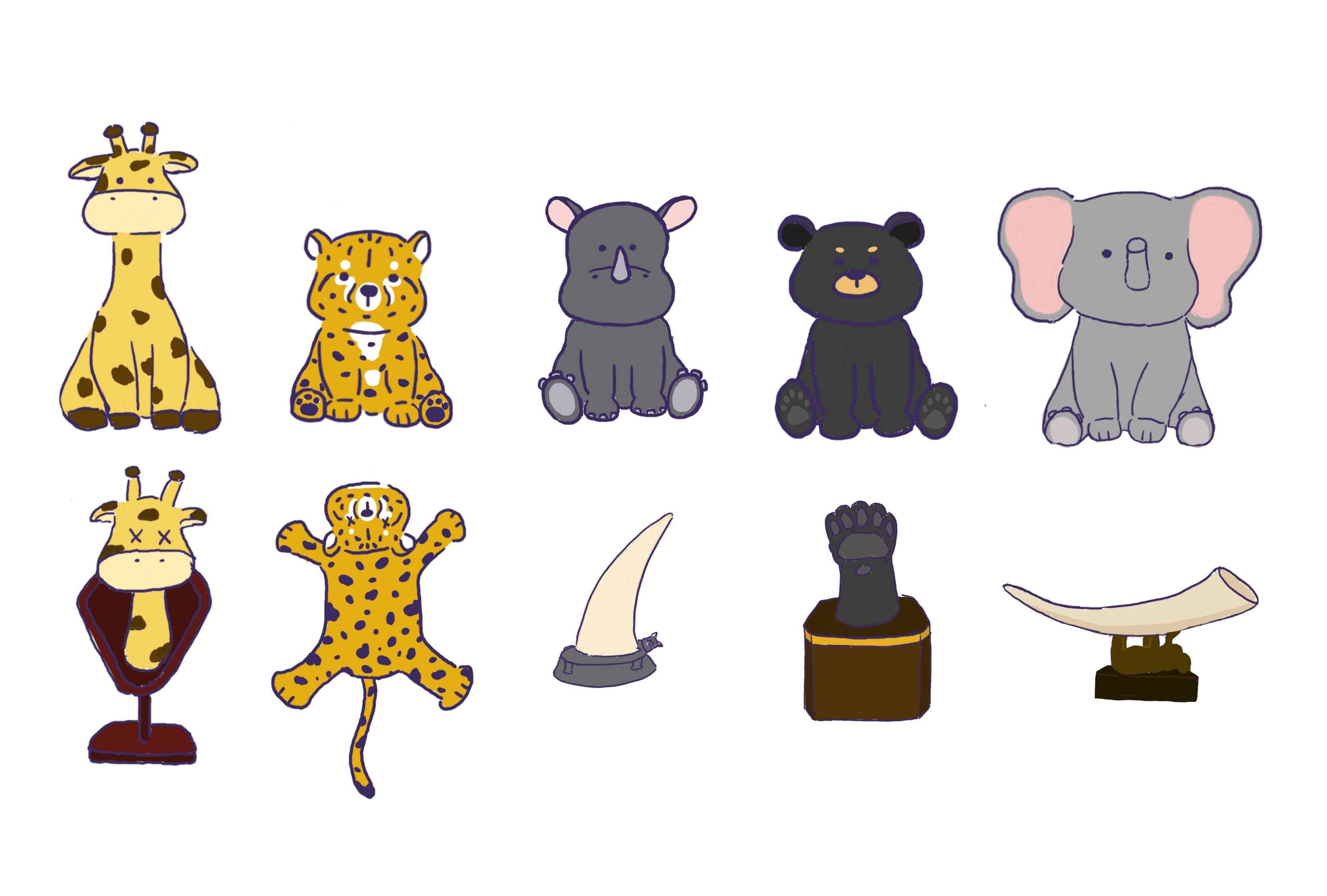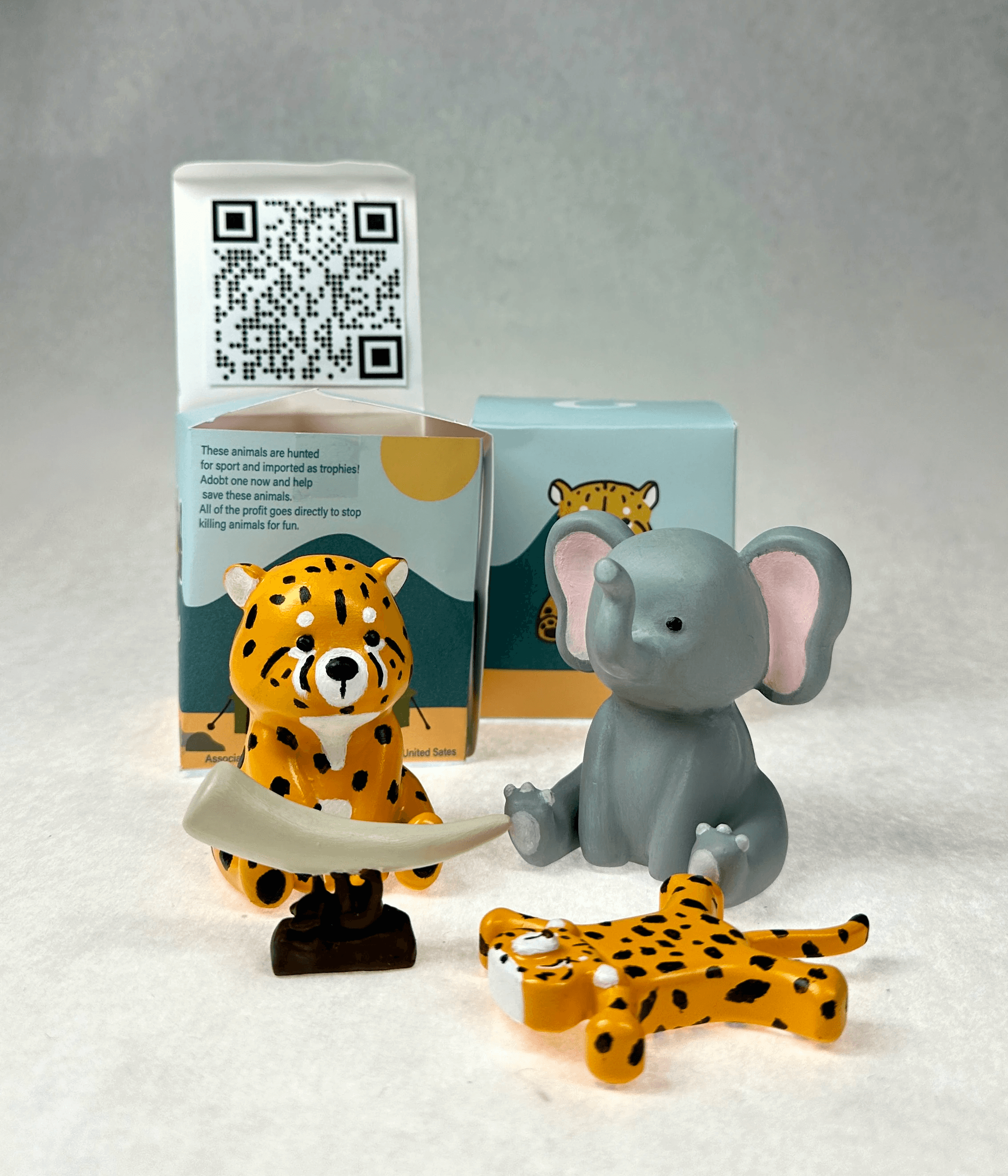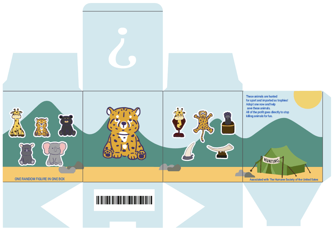 Blind box collection that raises awareness about Trophy Hunting of exotic animals.