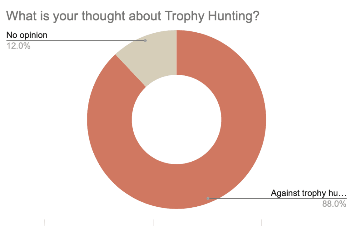 This project is intended to raise awareness about Trophy Hunting, educate the public about this topic, and prevent it from harming more innocent animals.