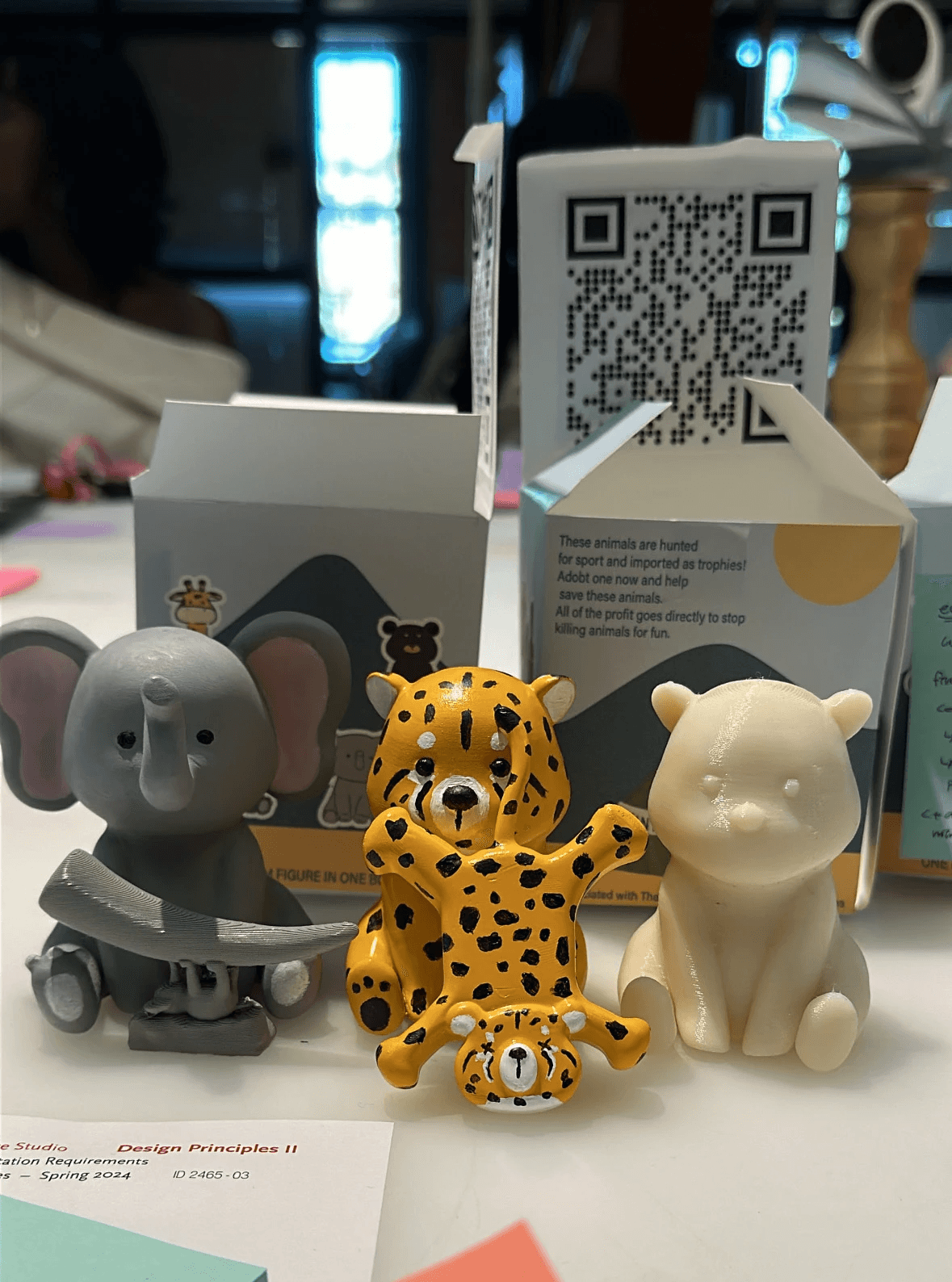 I decided to move forward with the second idea. Recognizing that I couldn't stop trophy hunting alone, I focused on spreading awareness. The profit from the blind box will go directly to the Humane Society of the United States, and each box includes a QR code linking to an environmental organization's website, allowing buyers to learn more and contribute further to wildlife protection.