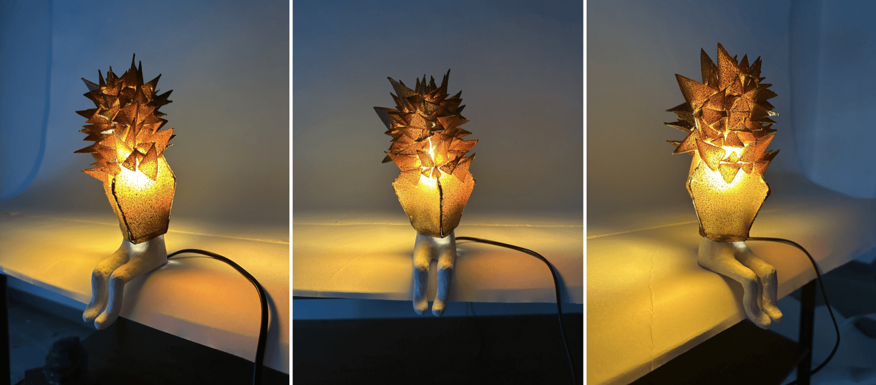 The project began with an initial focus on children's lighting, inspired by the environmental impact of short-lived plastic toys. Given the project's prompt to create a lamp using biomaterial, I aimed to design a lamp that explored sustainable materials while serving a meaningful purpose. However, as the ideation process evolved, I pivoted toward a concept that leveraged the flexibility of biomaterials to create an interactive emotional outlet.