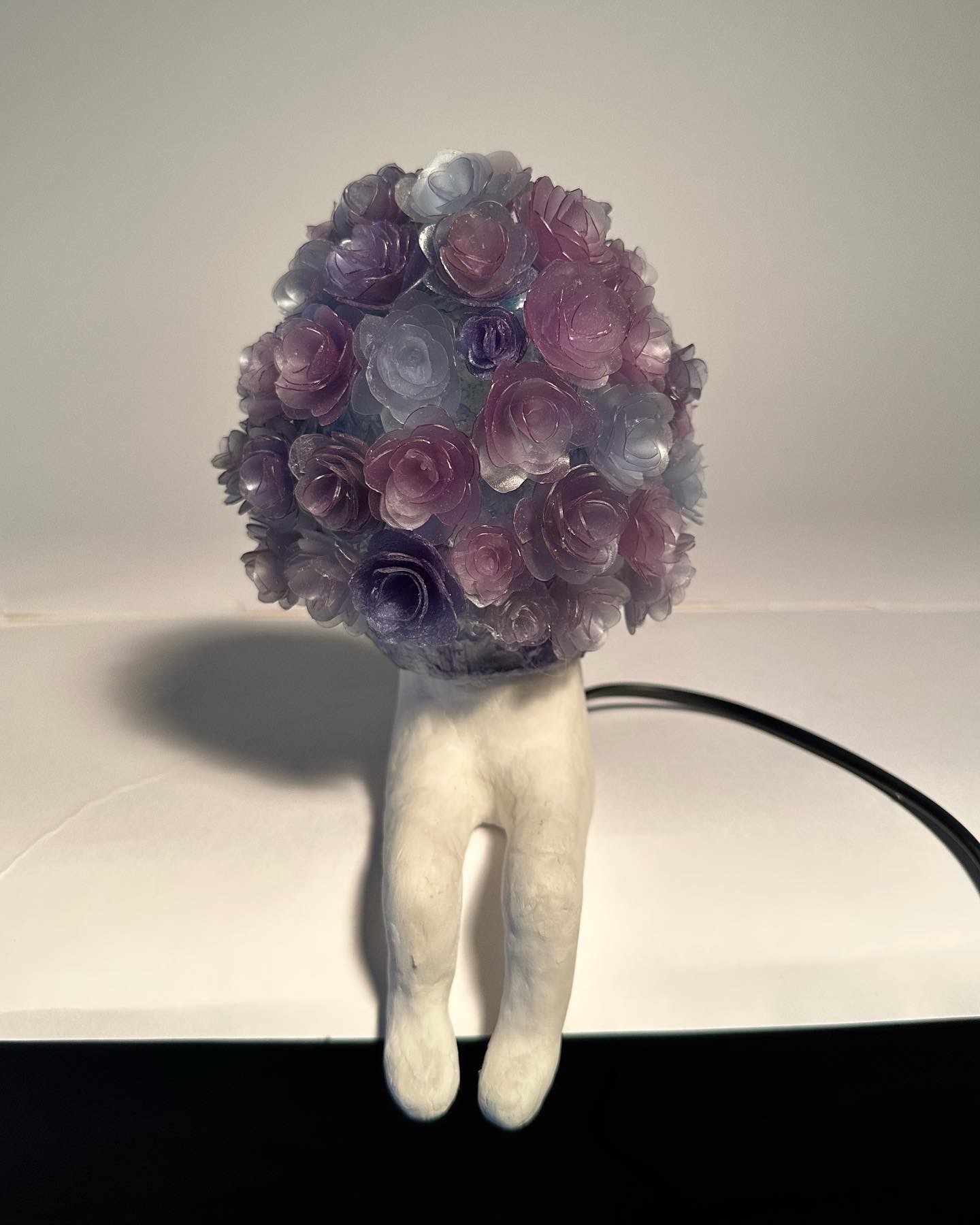 Embedded bioplastic flowers in varying sizes and colors were carefully arranged, representing affection in its many forms. The organic variations in color result from the unpredictable reaction of food dyes, reinforcing the theme of emotional complexity.